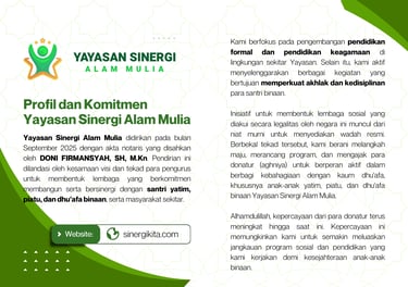 Sahabat dapat mengakses dan membaca profil resmi Yayasan Sinergi Alam Mulia dalam format PDF. Silakan klik tombol di bawah untuk mengunduh dokumen.